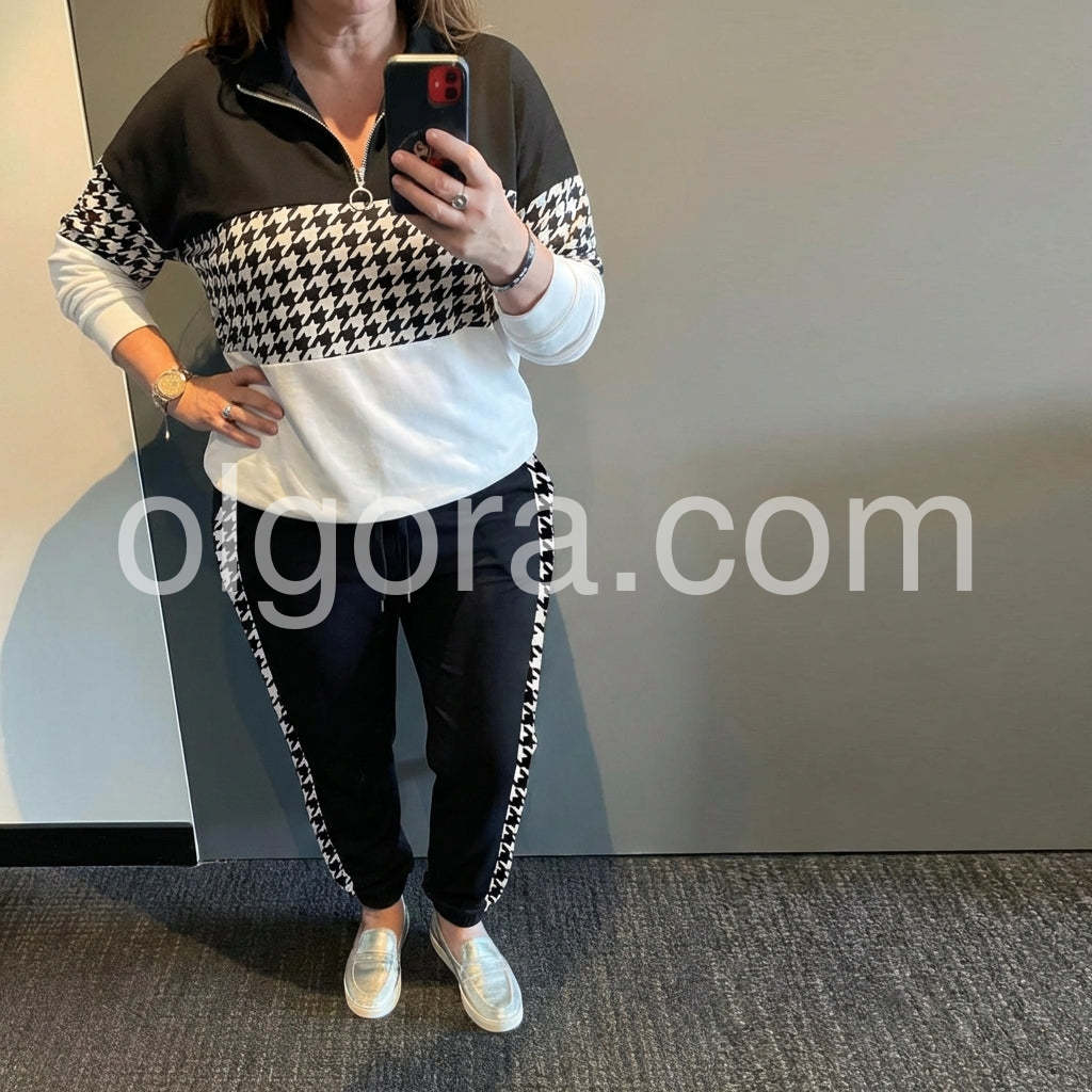 Yes!It runs true to the garment size chart please choose your size based on your measurements.This elegant two-piece set features a unique houndstooth print for a sophisticated touch. With long sleeves, it is perfect for cooler weather and adds a touch of elegance to any outfit. Made with quality materials for a comfortable fit and lasting appeal.