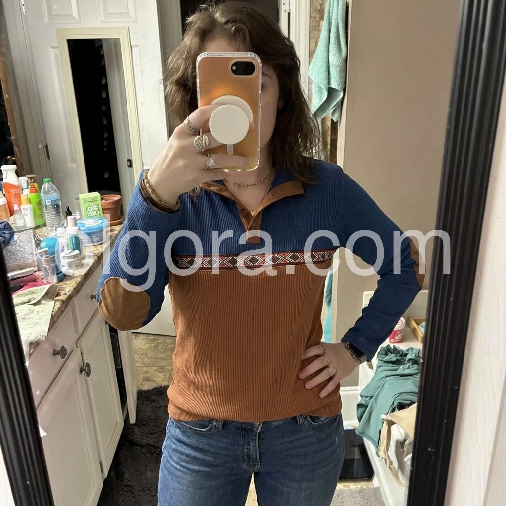 Yes!It runs true to the garment size chart please choose your size based on your measurements.Elevate your casual wardrobe with this sophisticated brown long sleeve top, featuring contrasting color block panels that add visual interest and dimension. The signature elbow patches deliver timeless preppy appeal while reinforcing high-wear areas for enhanced durability. Crafted for versatility, this piece transitions seamlessly from weekend errands to relaxed office settings. The structured long sleeves provide coverage and warmth, making it an ideal layering piece for transitional seasons. A refined choice for those who appreciate understated style with functional design details.