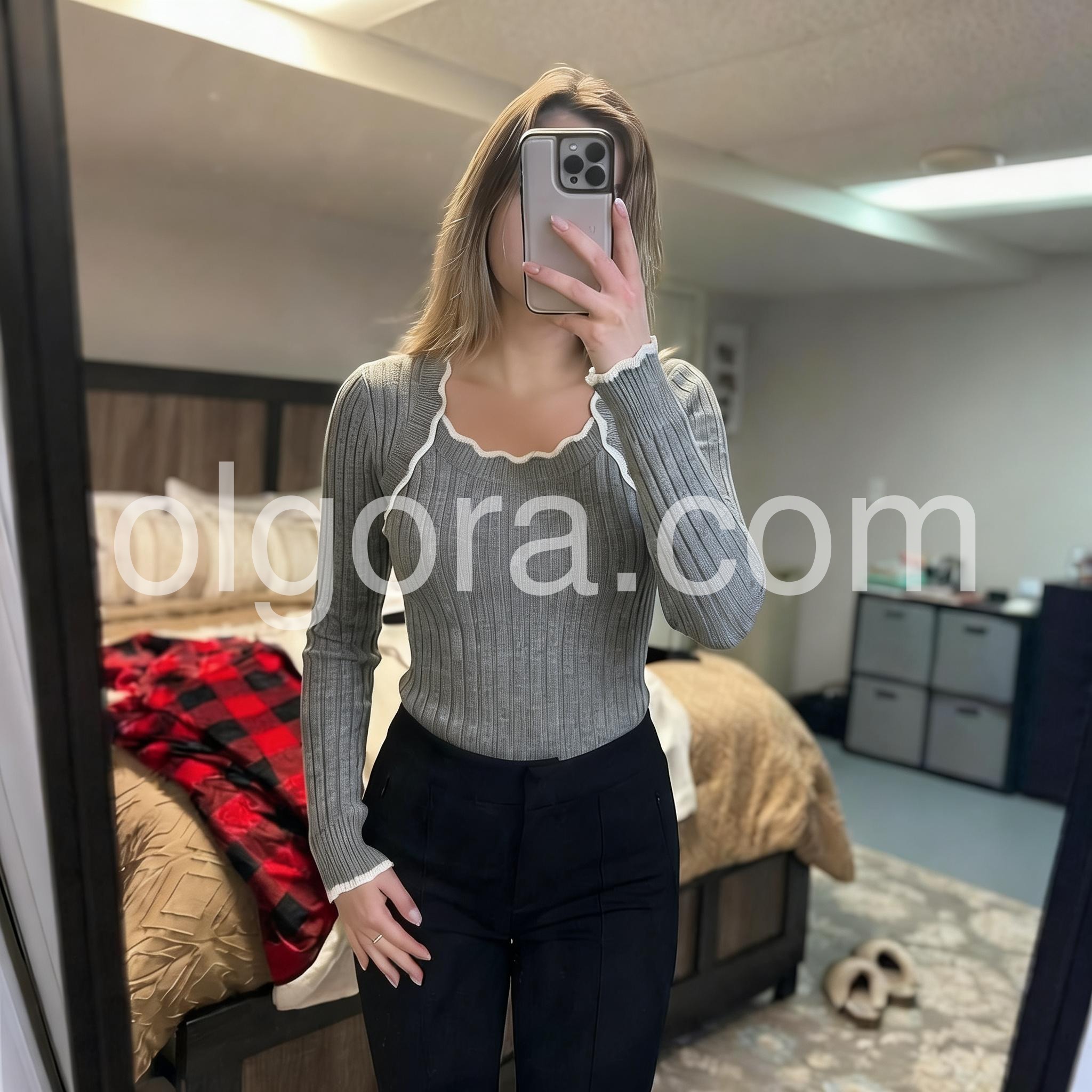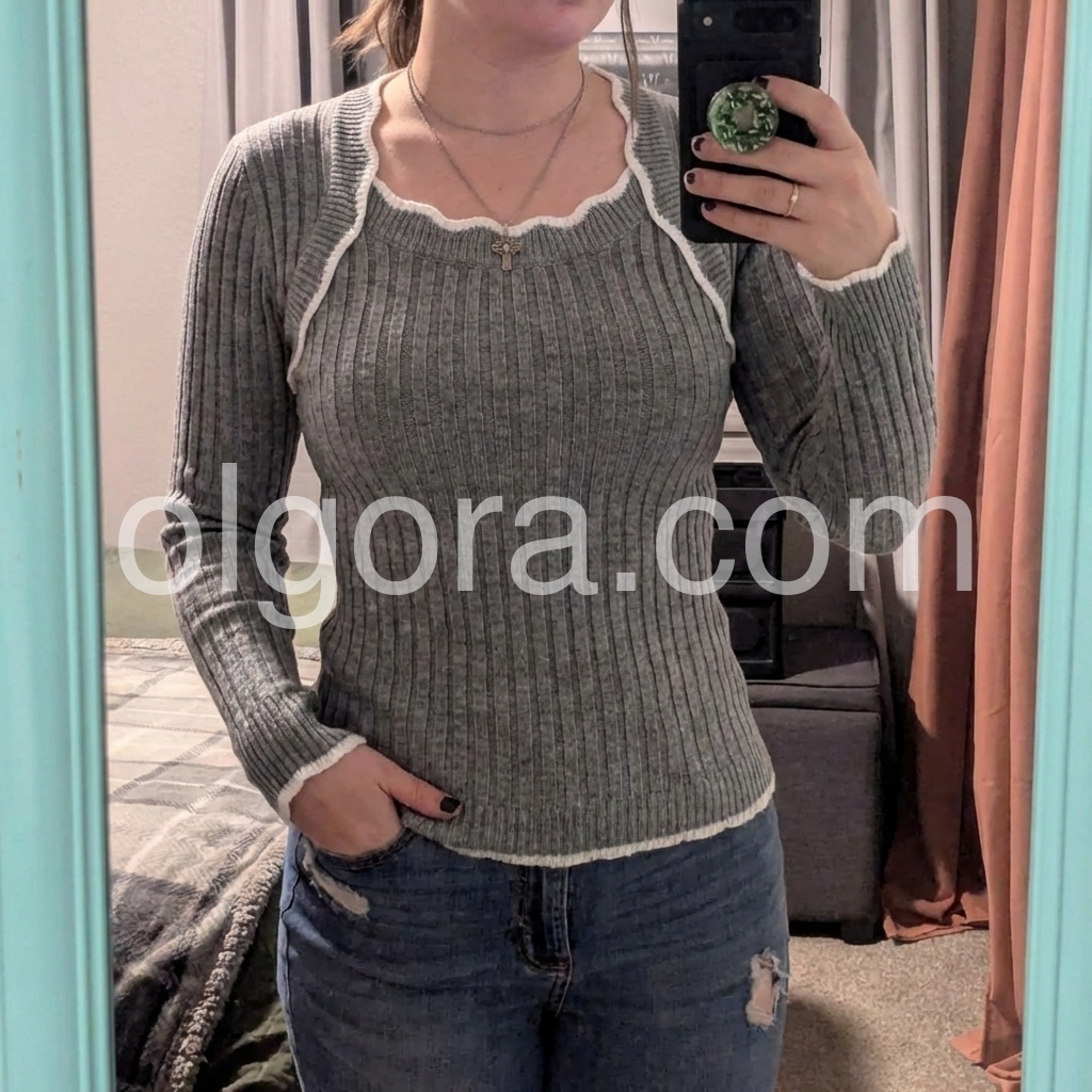 Yes!It runs true to the garment size chart please choose your size based on your measurements.Stay cozy and stylish with our Grey Square Neck Long Sleeve Sweater. Made with high quality materials, this classic sweater offers a snug fit and an elegant square neckline. Enjoy the warmth and comfort of long sleeves, while looking effortlessly chic. Perfect for any occasion, this sweater is a must-have for your wardrobe.