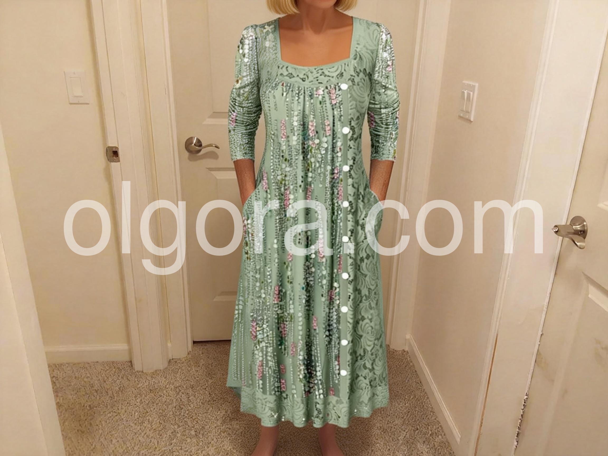 Yes!It runs true to the garment size chart please choose your size based on your measurements.Imagine effortless elegance that turns heads at every glance. This fresh green midi dress captures modern sophistication with its architectural square neckline that frames the collarbone beautifully, paired with graceful long sleeves for refined polish. The A-line silhouette flows with understated grace, while the luxurious rayon-elastane blend moves like silk against your skin—stretchy enough for all-day comfort, yet structured enough to maintain its impeccable shape. Practical side pockets add a touch of everyday luxury, while the midi length strikes the perfect balance between timeless and contemporary. Whether you're navigating the office, attending weekend brunches, or stepping into evening plans, this dress adapts seamlessly to your lifestyle. Machine washable for effortless care. Discover the dress that makes you feel as good as you look.