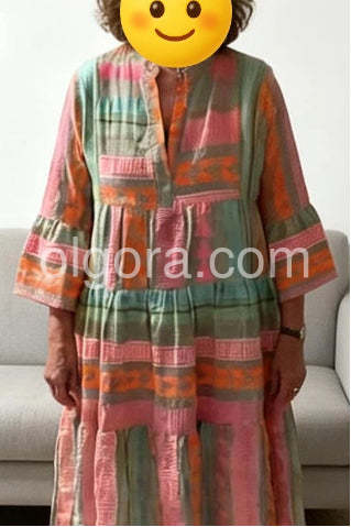 Fresh Print 3/4 Sleeve Mini Dress