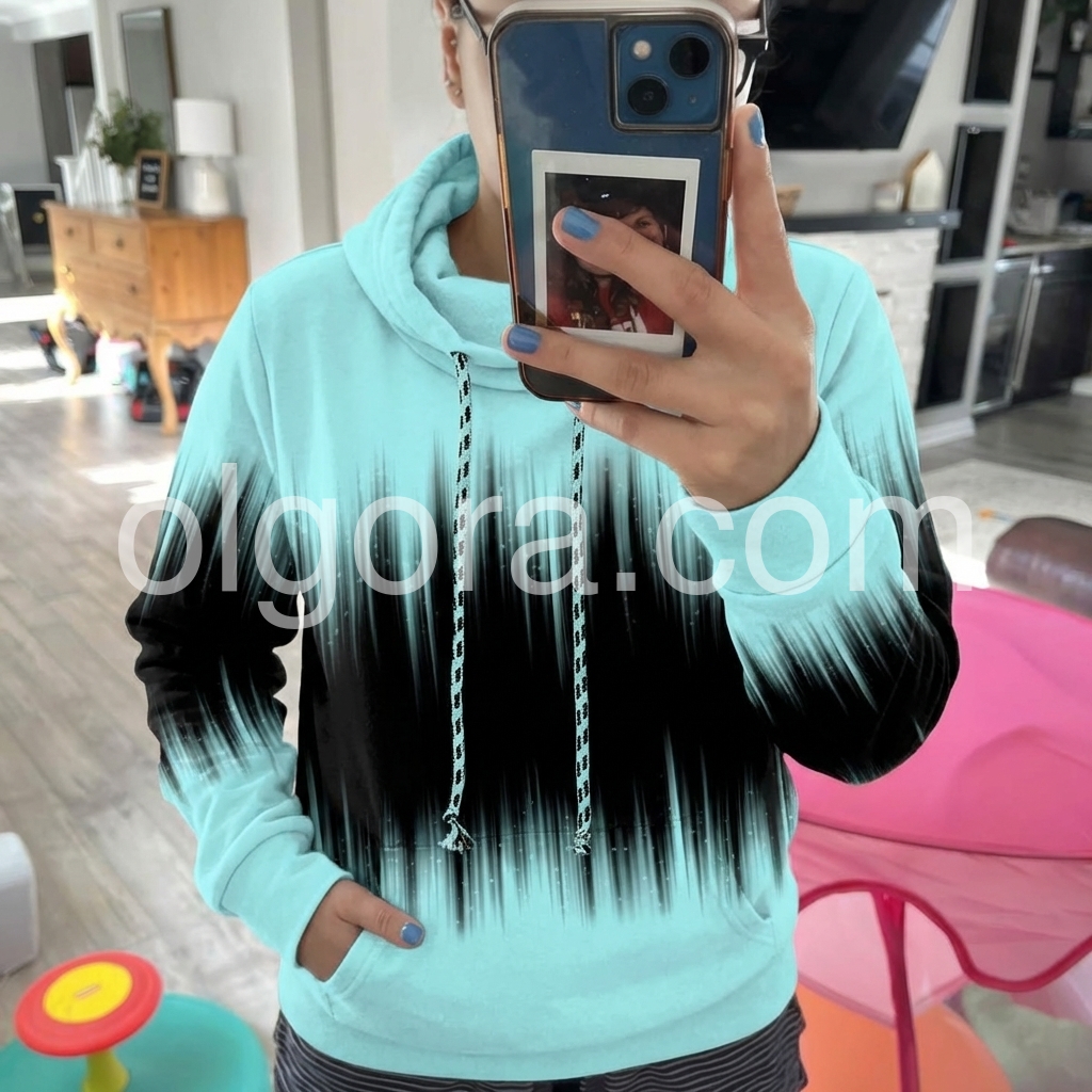 Aqua & Black Ombre Rain Hoodie Drawstring Sweatshirt