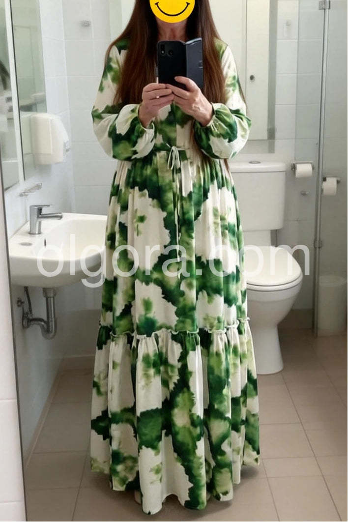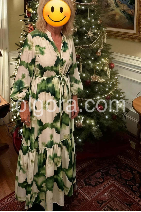 Yes!It runs true to the garment size chart please choose your size based on your measurements.This Green Long Sleeve V-Neck Maxi Dress is perfect for any occasion. Made with high-quality fabric, it will provide comfort and style all day long. Its versatile design allows it to be dressed up or down, making it a must-have for any wardrobe. Experience elegance and comfort in this maxi dress.