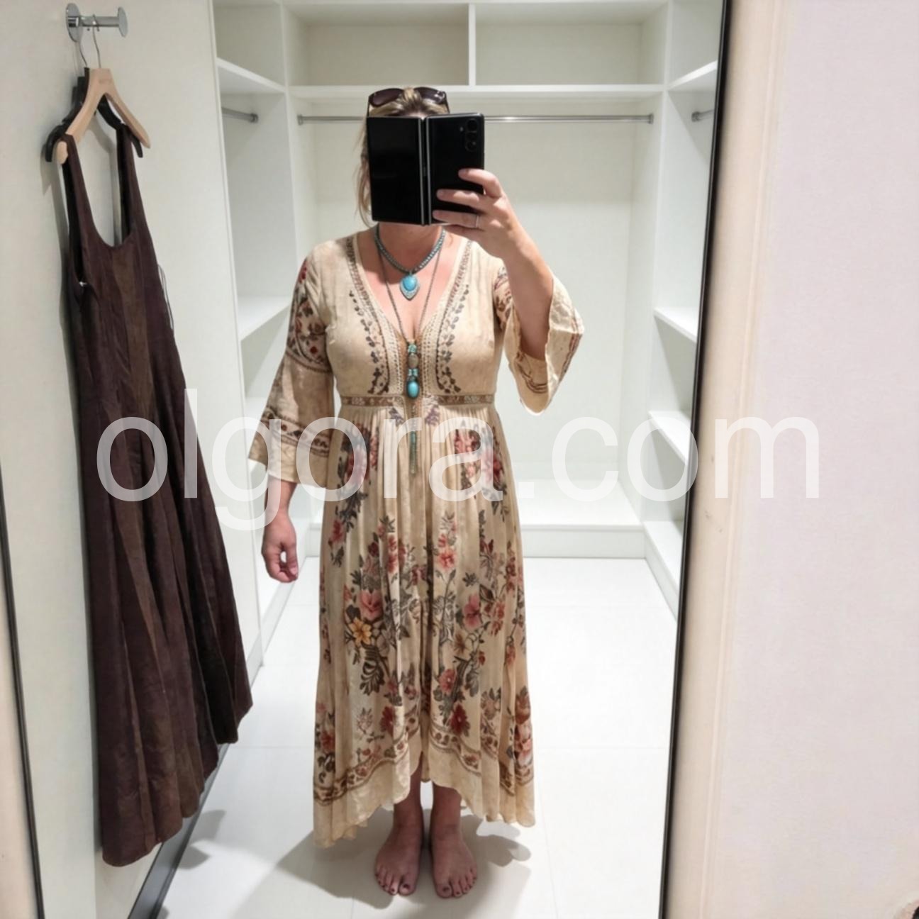 Yes!It runs true to the garment size chart please choose your size based on your measurements.This Retro 3/4 Sleeve Beige Midi Dress combines timeless elegance with comfortable wearability. Its classic beige tone and modest midi length make it versatile for various occasions, while the 3/4 sleeves offer a balanced blend of coverage and style. Crafted to flatter a range of silhouettes, this dress is an expert choice for those seeking understated sophistication with a vintage-inspired touch.
