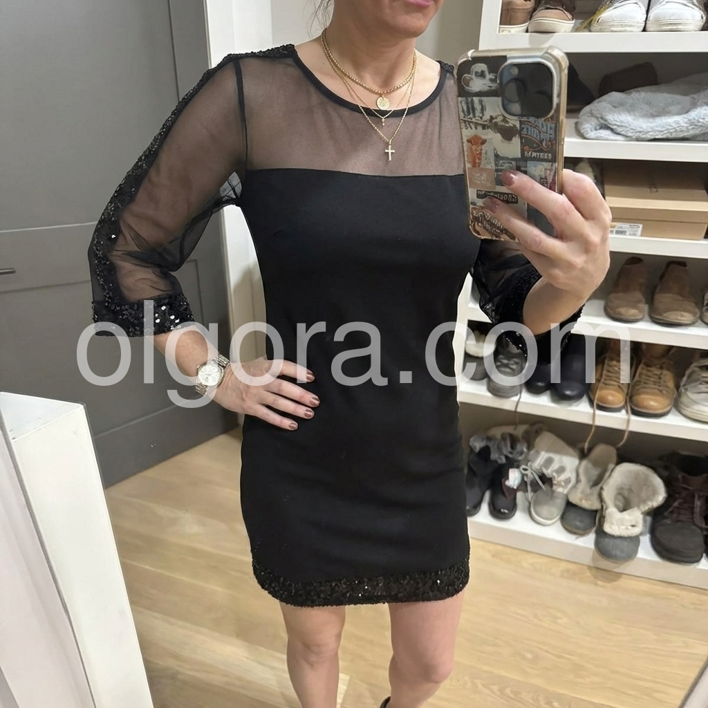 Yes!It runs true to the garment size chart please choose your size based on your measurements.Elevate your evening look with this striking black mini dress, where sheer sleeves create an alluring contrast against the fitted silhouette. The sequined hem catches light with every movement, delivering sophisticated sparkle without overwhelming the design. Perfect for cocktail events or upscale nights out, this piece balances elegance with contemporary edge. The sheer sleeve detailing adds dimension while maintaining a refined aesthetic, making it versatile enough to transition from dinner to dancing.