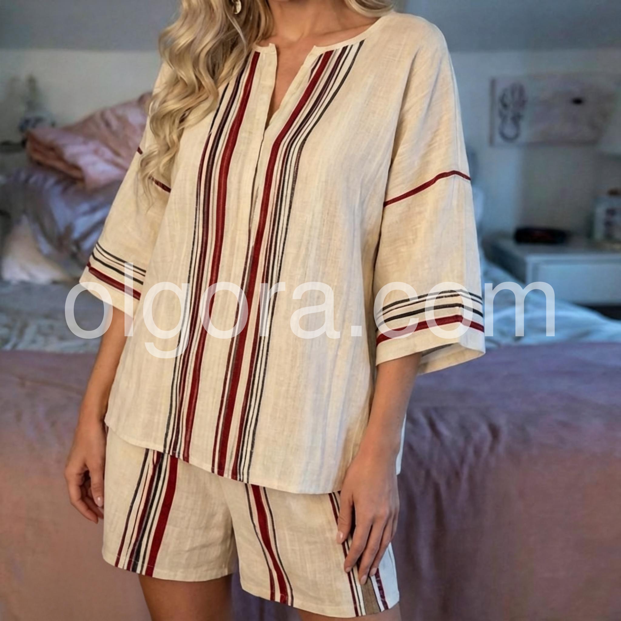 Yes!It runs true to the garment size chart please choose your size based on your measurements.This sophisticated two-piece set features a flattering V-neck design complemented by classic striped patterns. Engineered for optimal comfort without sacrificing style, the coordinated pieces offer versatile styling options for various occasions. The thoughtfully constructed silhouette provides a polished appearance while maintaining ease of movement throughout the day.