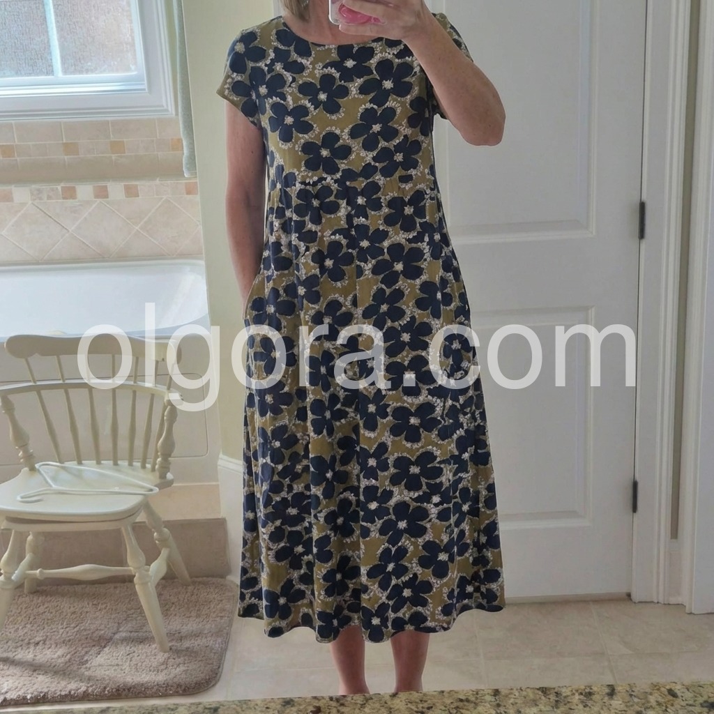 Modern Floral Print Short Sleeve Midi Dress